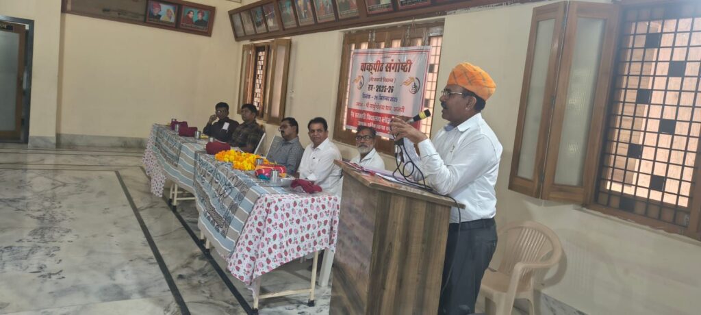 आज श्री मारकंडेश्वर धाम अजारी में गैर सरकारी विद्यालय ब्लॉक पिंडवाड़ा की संस्था प्रधान वाक्पीठ संगोष्ठी का आयोजन किया गया जिसमें संत सानिध्य श्री श्री 1008 श्री रेवा नाथ जी महाराज मार्कण्डेय धाम अजारी मुख्य अतिथि श्री लालाराम कुम्हार मुख्य ब्लॉक शिक्षा अधिकारी पिंडवाड़ा, विशिष्ट अतिथि श्री अशोक पाल सिंह मीणा अतिरिक्त जिला शिक्षा अधिकारी माध्यमिक शिक्षा सिरोही ,श्री मनोज खंडेलवाल अतिरिक्त मुख्य ब्लॉक शिक्षा अधिकारी पिंडवाड़ा ,श्री नरेंद्र सिंह आढ़ा प्रधानाचार्य राजकीय बालिका उच्च माध्यमिक विद्यालय जनापुर, श्री मुकेश सुथार जिला प्रभारी ssp और कार्यक्रम संरक्षक श्री सुभाष चंद्र रावल प्रधानाचार्य गुरुकुल उच्च माध्यमिक विद्यालय हजारी रहे। वाक्पीठ संगोष्ठी के प्रथम सत्र में गैर सरकारी विद्यालयों के संचालन में आ रही विभिन्न प्रकार की समस्याओं के निराकरण के लिए अधिकारी जी को ज्ञापन सौंपा गया तथा सभी वार्ताकारों ने अपनी वार्ता प्रस्तुत की एवं अधिकारियों द्वारा प्रत्येक विषय पर मार्गदर्शन दिया गया। भोजन अवकाश के पश्चात वाक्पीठ संगोष्ठी का दूसरा सत्र प्रारंभ किया जिसमें गैर सरकारी विद्यालयों के वरिष्ठ संचालक श्रीमान हनीश रावल ,श्री ओमप्रकाश गर्ग ,श्री दशरथ चारण द्वारा अलग-अलग विषयों पर वार्ता प्रस्तुत की गई तत्पश्चात पूर्व जिला आरटीई प्रभारी श्री नरेंद्र सिंह आढ़ा द्वारा विद्यालय संचालको के विभिन्न प्रश्नों का समाधान किया गया और विद्यालय संचालन की बारीकियों से अवगत कराया गया ।